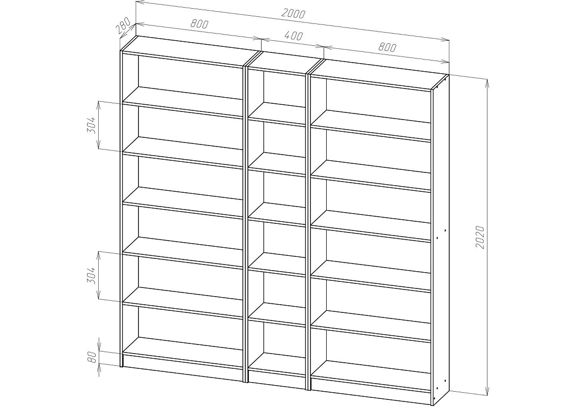 | Книжные шкафы, стеллажи от 600 мм до 1000 мм | 350 | 1000 | 600 |