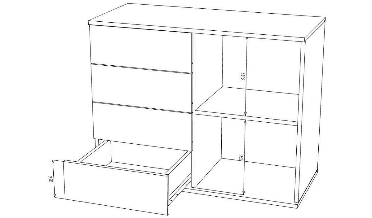 Комплектация: шариковые направляющие 100% выдвижения, ручки Алди Са-1 64мм алюминий, ножки - бук