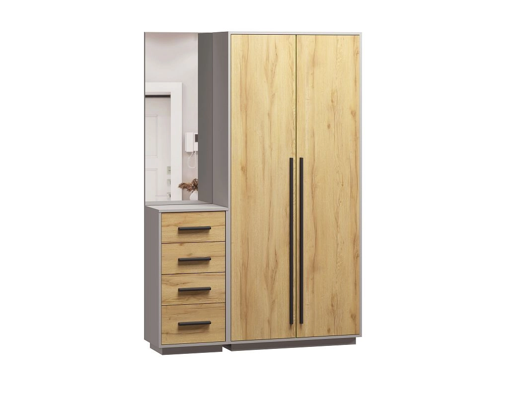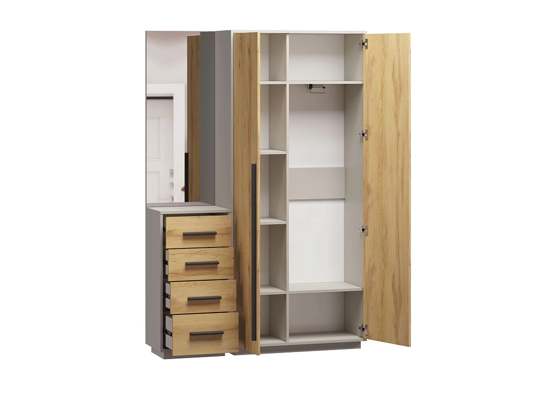 ЛДСП 16мм. Кромка в цвет корпуса. Направляющие на выдвижные ящики 100%. Штанга выдвижная 300мм. Ручки на шкаф арт.39215, ручки на комод арт. 39241