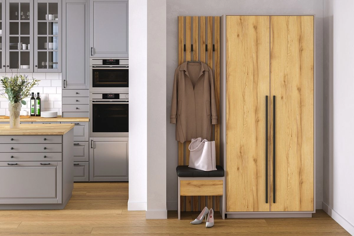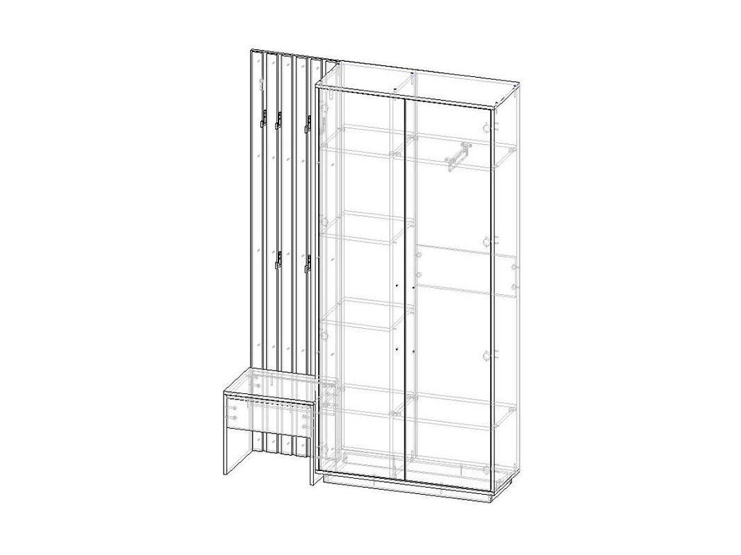 ЛДСП 16мм. Кромка в цвет корпуса. Штанга выдвижная 300мм. Мягкий элемент сидушки. Крючки арт.07215, ручки на шкаф арт.39215.