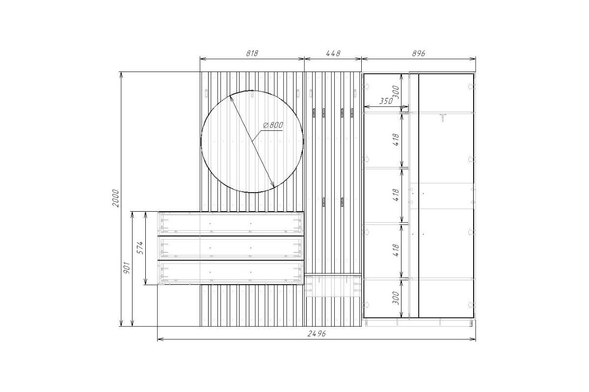 | Шкафы распашные, угловые | 350 | 800 | 500 |