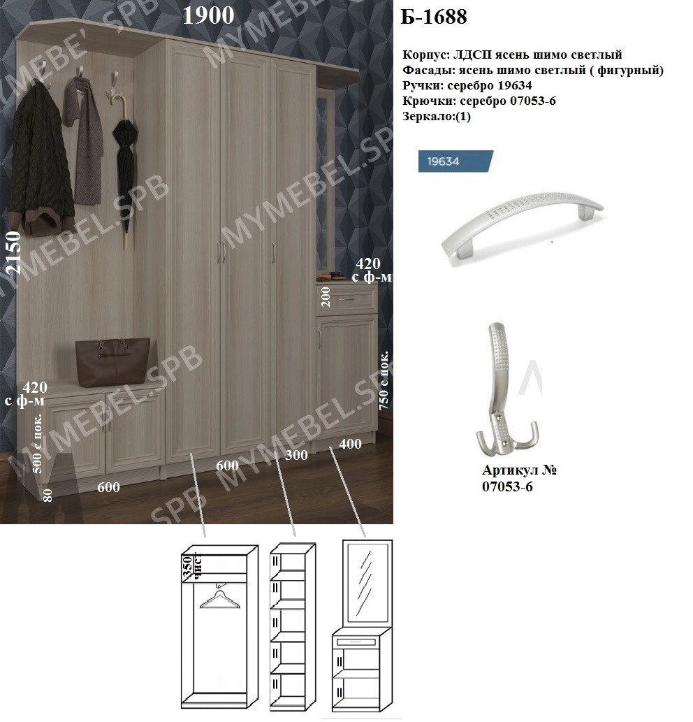 | Прихожие крупногабаритные | - | 1500 | 800 |