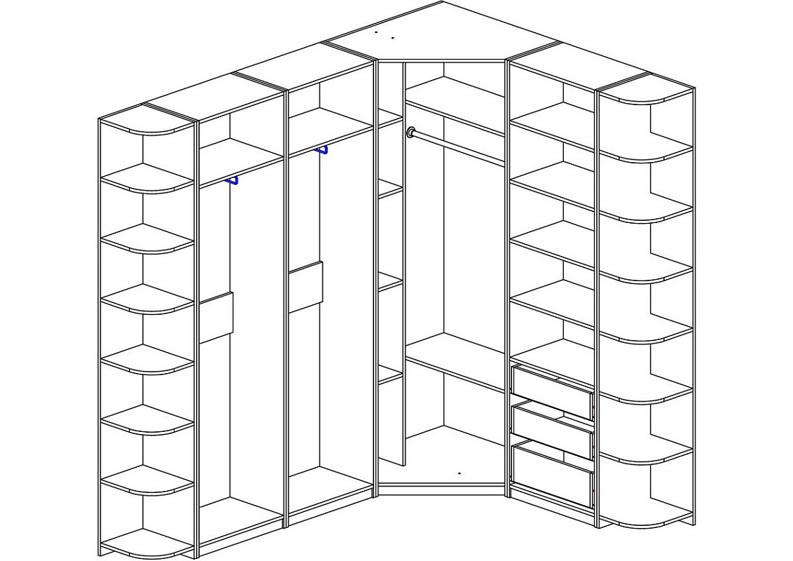 | Шкафы распашные, угловые | 350 | 800 | 500 |