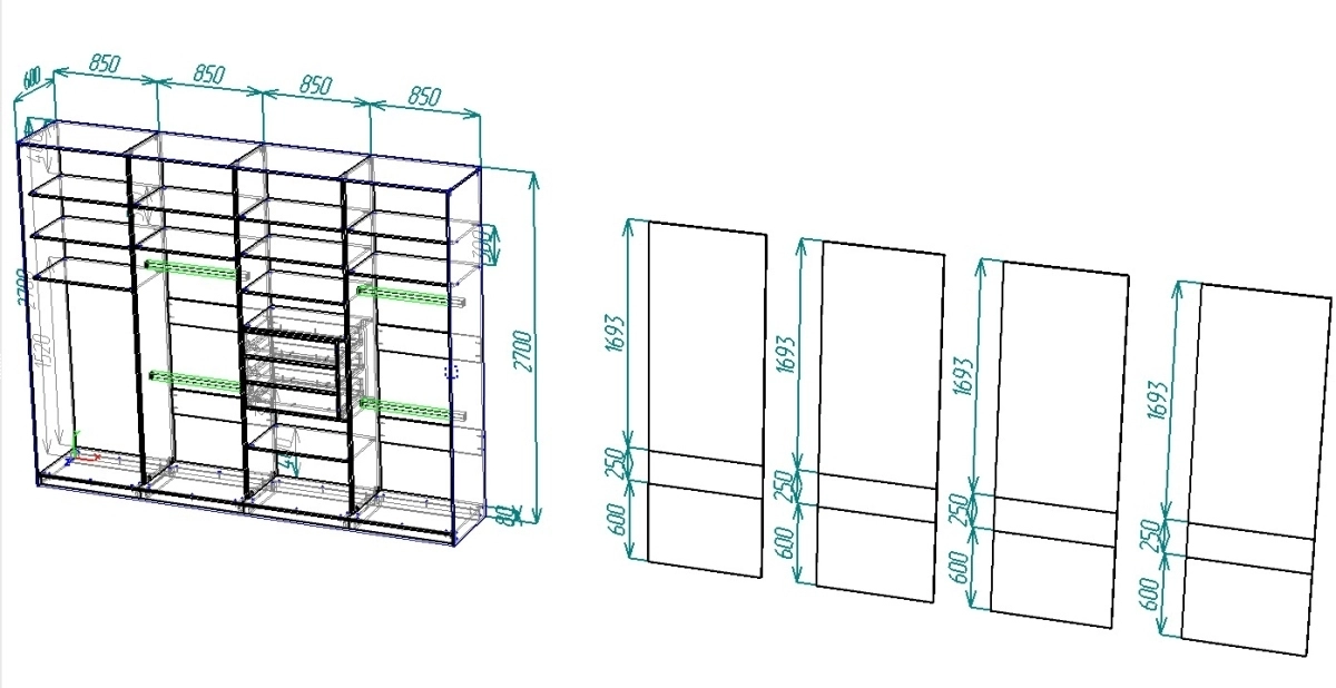 | Шкаф-купе 4 дверный (6-7 пачек) | 550 | 1600 | 800 |