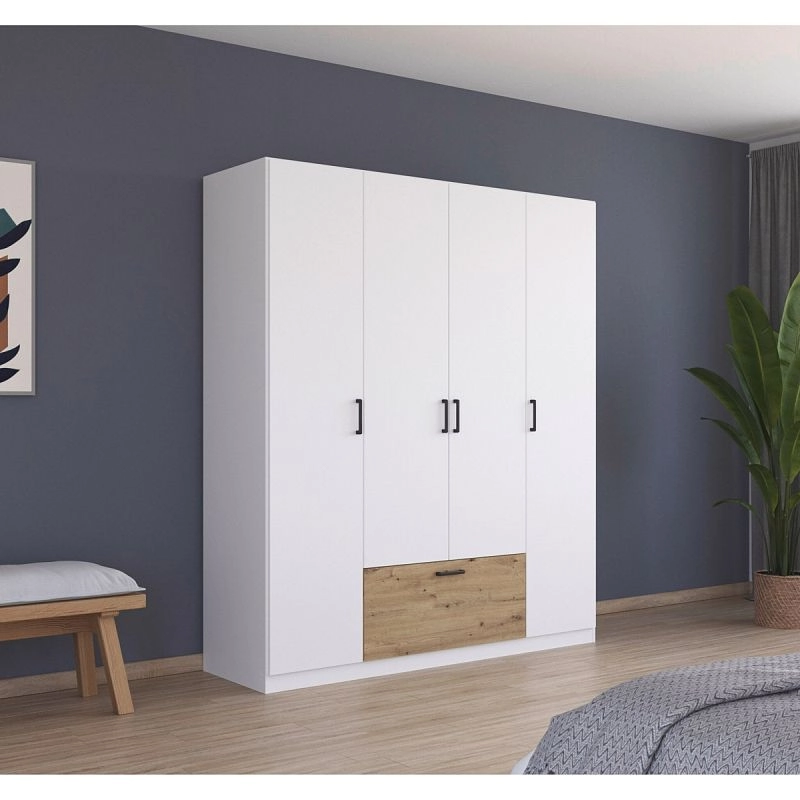 Шкаф распашной Бари-1 Белый / Дуб Бунратти