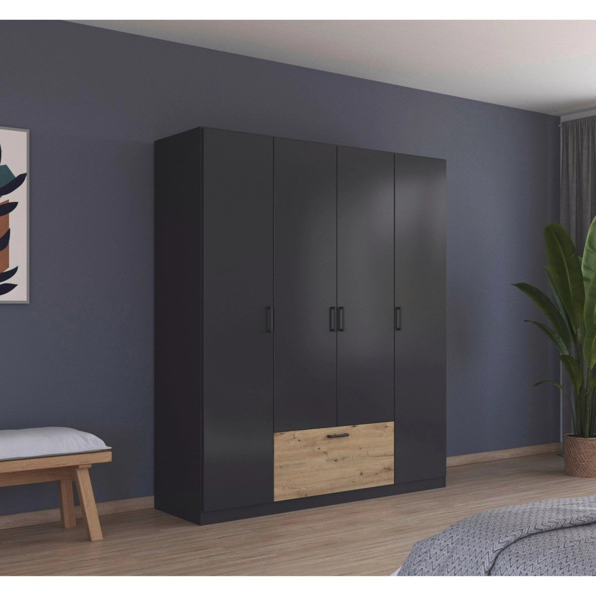 Шкаф распашной Бари-1 Черный / Дуб Бунратти