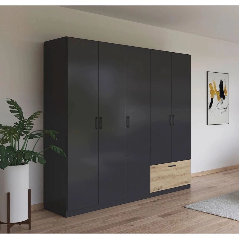 Шкаф распашной Бари-5 Черный / Дуб Бунратти