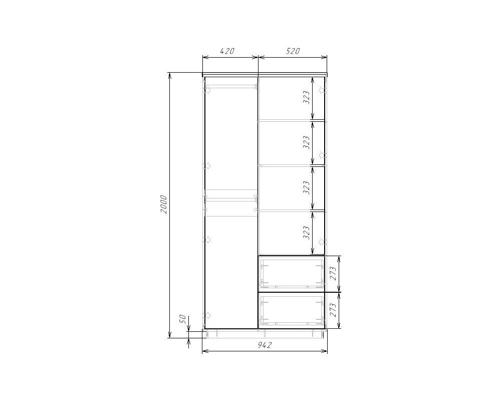 | Шкаф-купе 2 дверный (4-5 пачки) | 350 | 1100 | 600 |