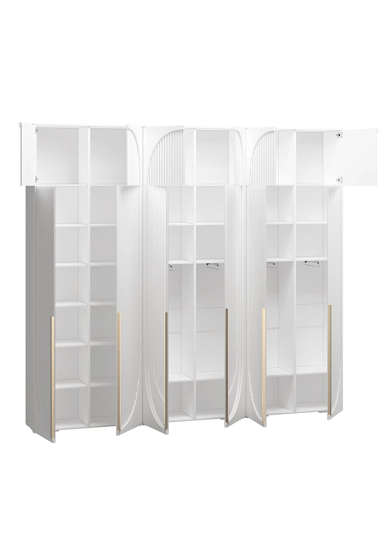 Размер отделений в каждом наполнении изготавливается по стандарту фабрики и может отличаться от фото. Если вам необходимы определенные размеры отделений в наполнении согласуйте это в чате с менеджером. При высоте шкафа 230-270 см антресоль слитная, 280-310 см съемная.