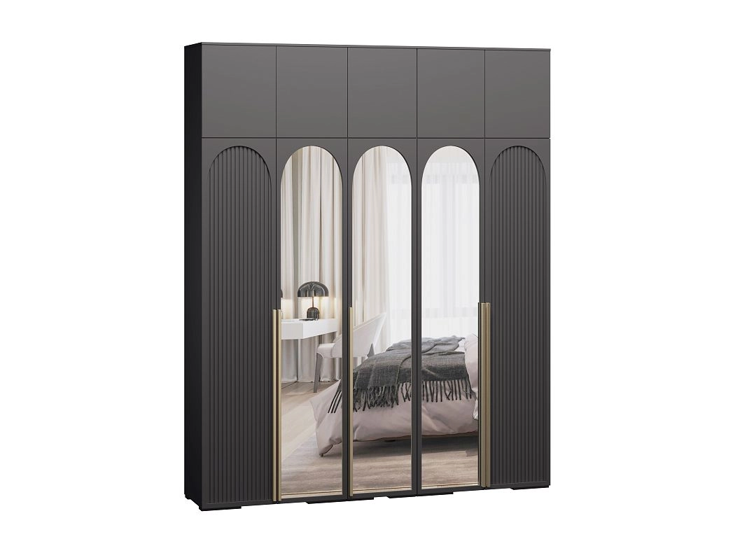 Шкаф распашной Брей-5 Хит с антресолью с зеркалами Черный