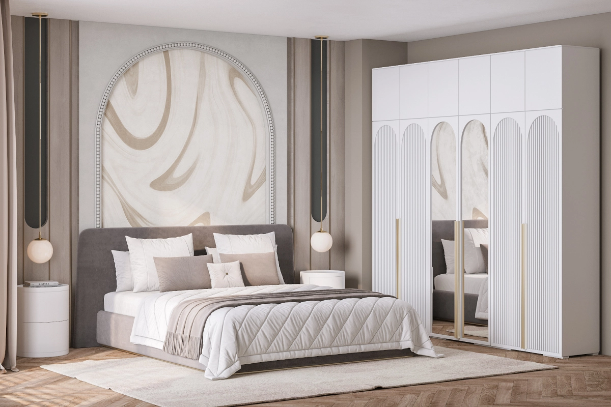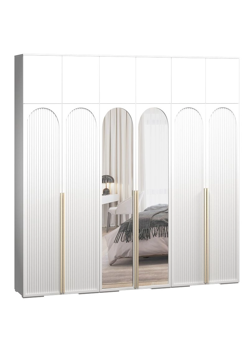 Шкаф распашной Брей-6 Хит с антресолью с зеркалами Белый