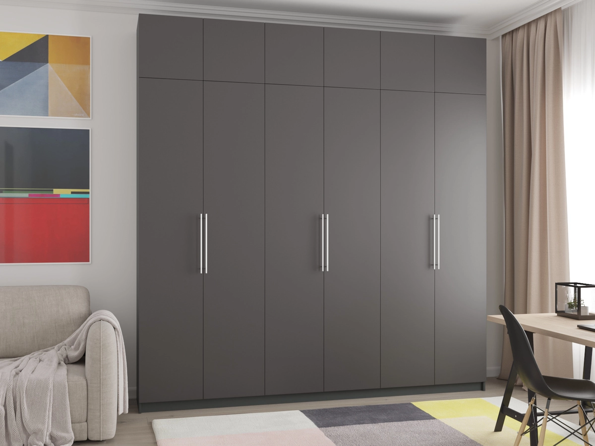 Шкаф распашной Калифорния-6 с антресолью Графит