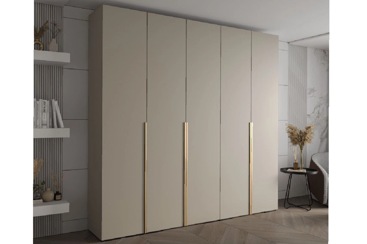 Комплектация: 2 секции Б (5 полок) / 3 секции П (полка под шляпы + полка + выдвижной кронштейн + полка под обувь), 39924 ручка торцевая СА-6/6, 864мм/997мм золотой металлик, петли без доводчиков