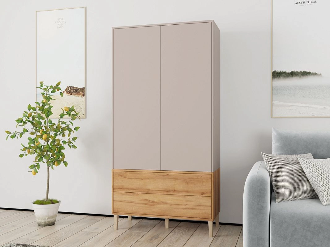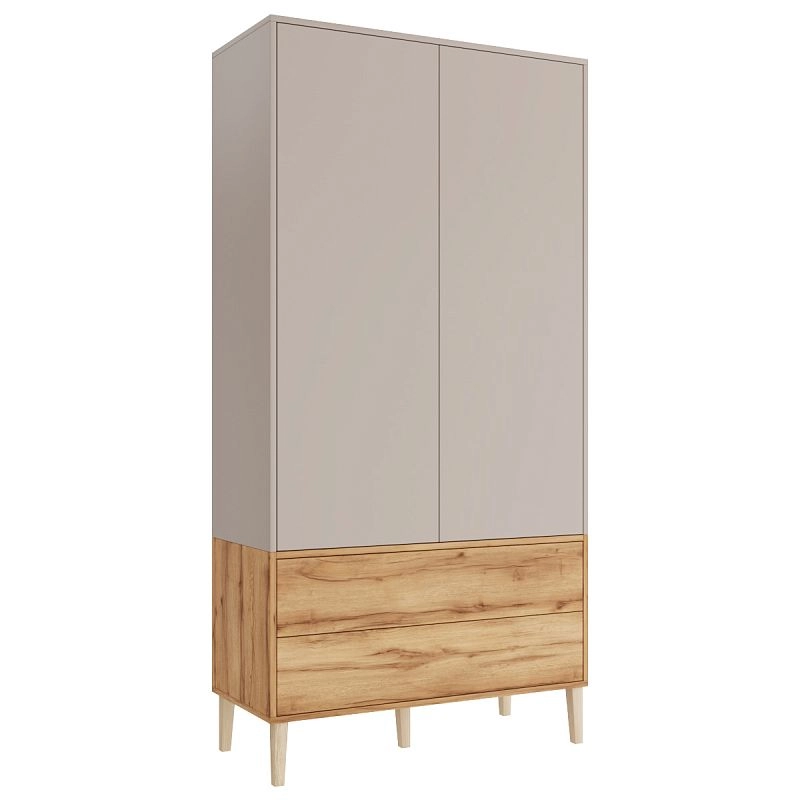 Наполнение: П (выдвижной кронштейн) / Б (3 полки) / 2 ящика, петли без доводчика, направляющие 100 % выдвижения без доводчика, система открывания Push-to-open, опора массив дерева Н=150мм