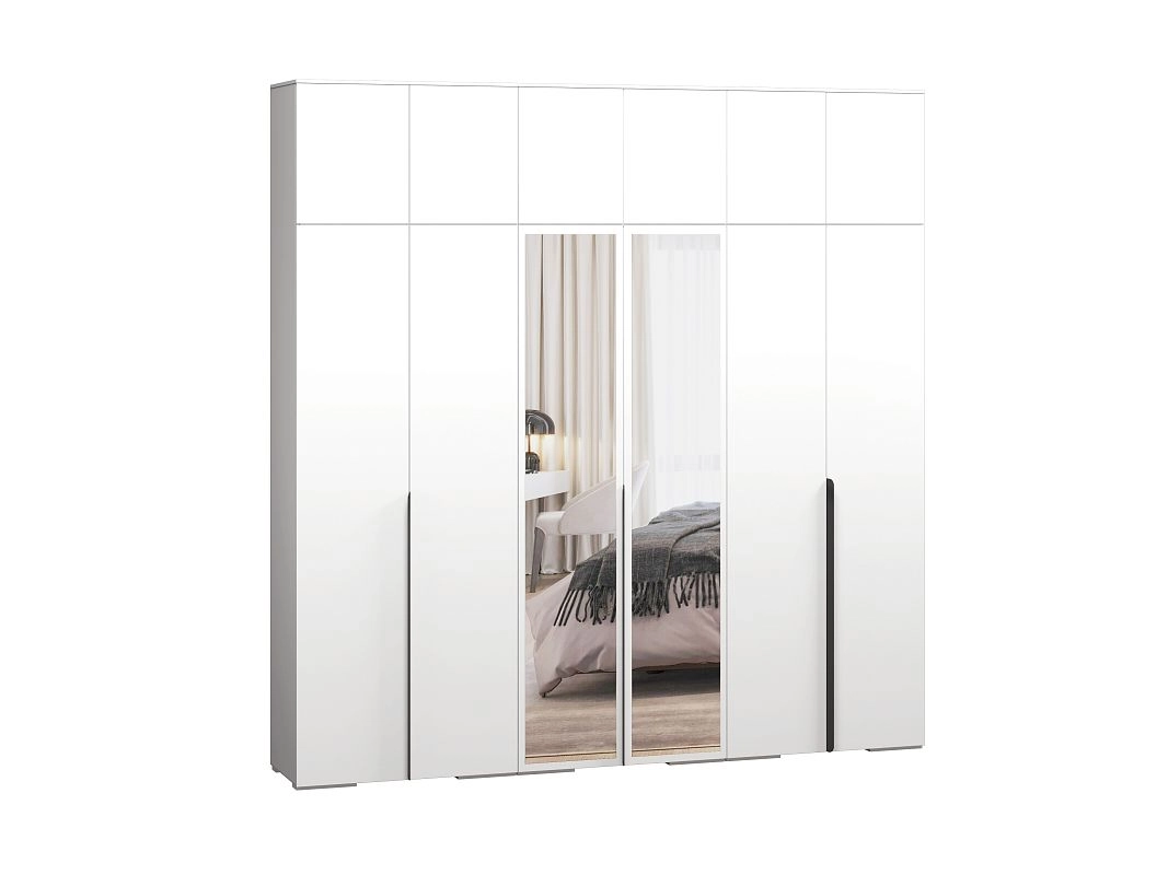 Шкаф распашной Солфорд 6 с антресолью с зеркалами Белый