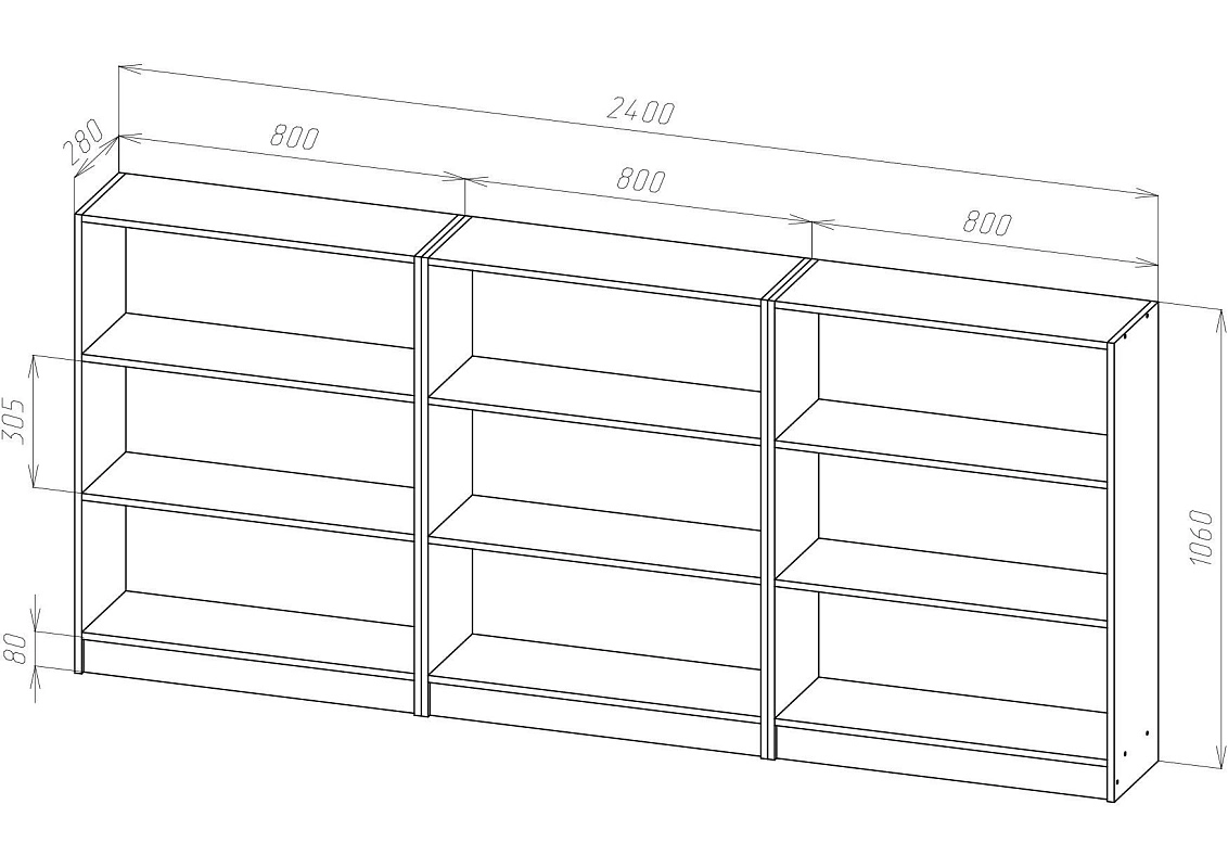 | Книжные шкафы, стеллажи от 600 мм до 1000 мм | 350 | 1000 | 600 |