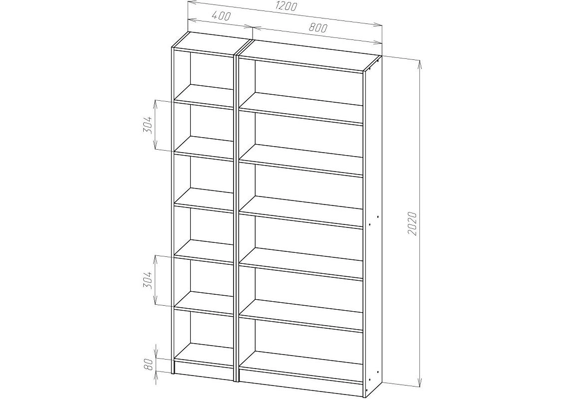 | Книжные шкафы, стеллажи от 1000 мм до 1600 мм | 400 | 1200 | 700 |