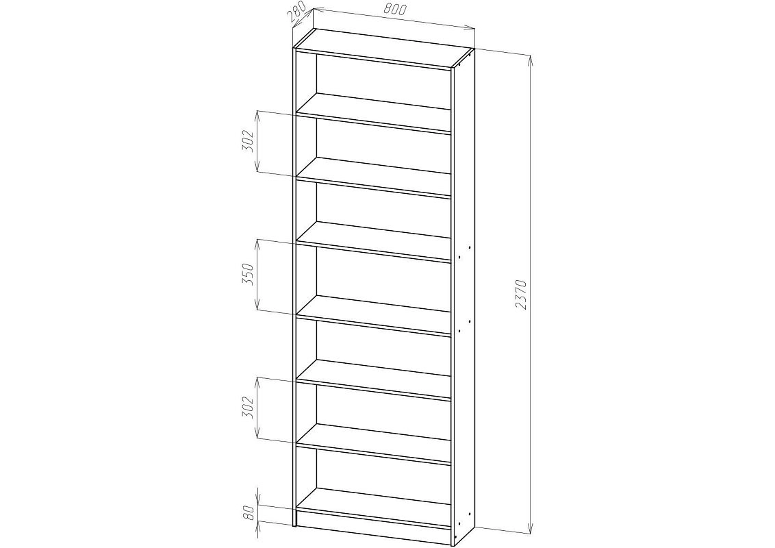 | Книжные шкафы, стеллажи от 600 мм до 1000 мм | 350 | 1000 | 600 |