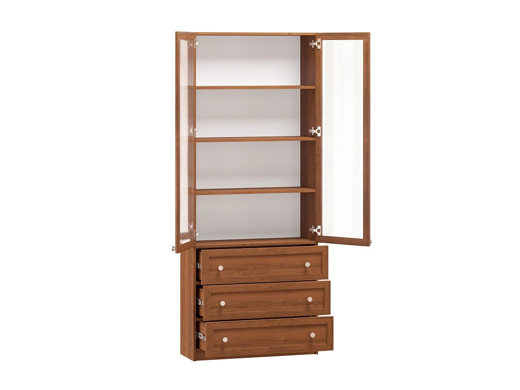 Комплектация: фасады - рамка МДФ квадро + вставка ЛДСП/стекло простое, задняя стенка ЛДВП белого цвета, ручка кнопка КН-1 хром, петли без доводчика, роликовые направляющие