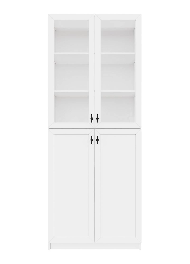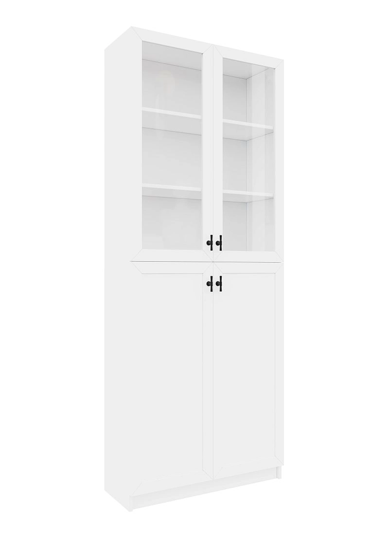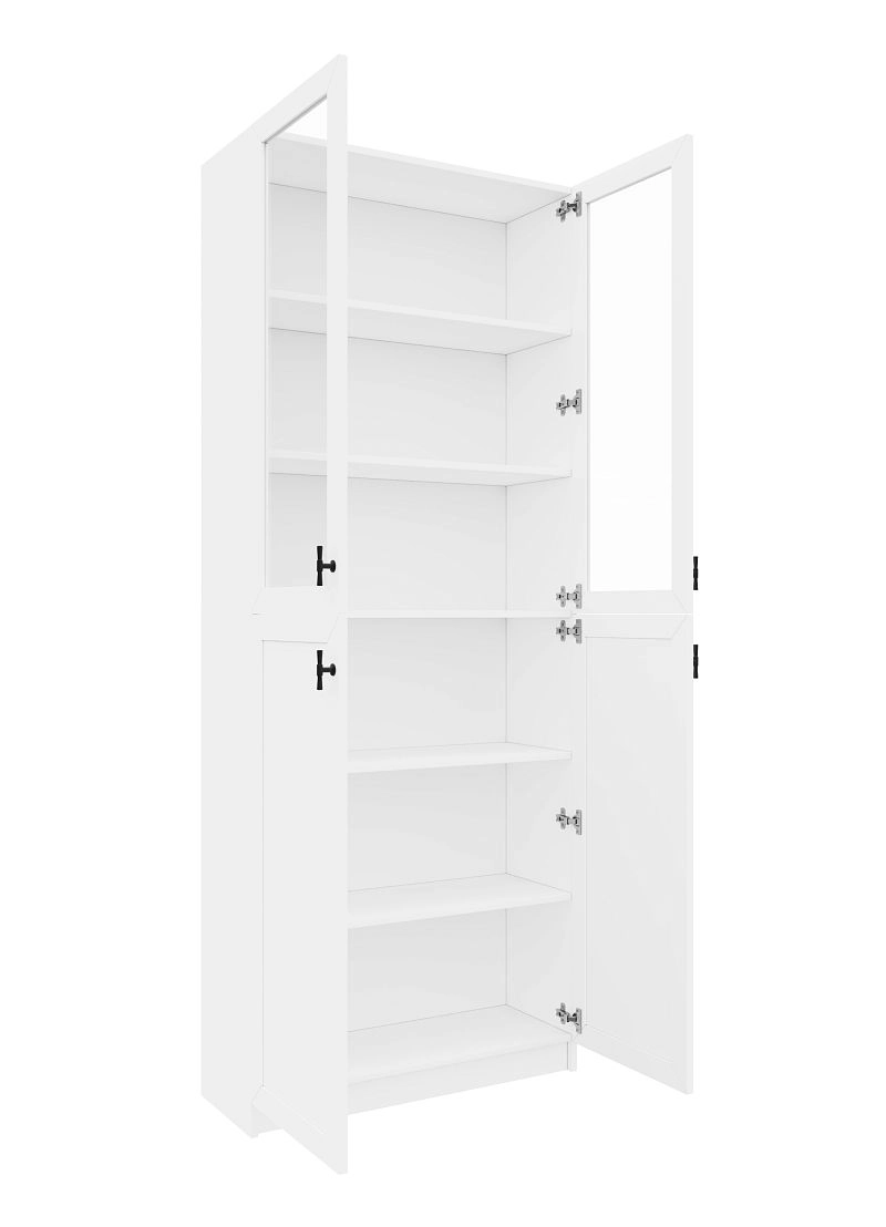 Комплектация: фасады - рамка МДФ квадро + вставка ЛДСП/стекло простое, задняя стенка ЛДВП белого цвета, ручка ZA2391 кнопка черная MBK, арт. № 39512, петли без доводчика