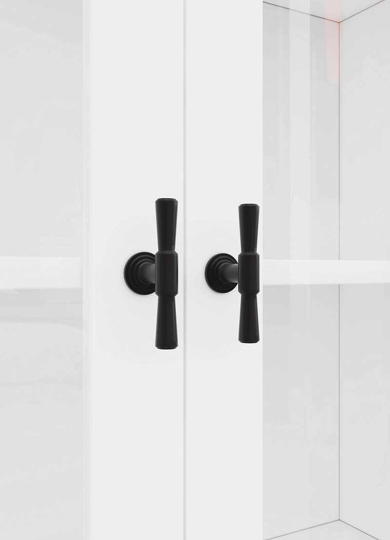 Комплектация: фасады - рамка МДФ квадро + вставка ЛДСП/стекло простое, задняя стенка ЛДВП белого цвета, ручка ZA2391 кнопка черная MBK, арт. № 39512, петли без доводчика, роликовые направляющие