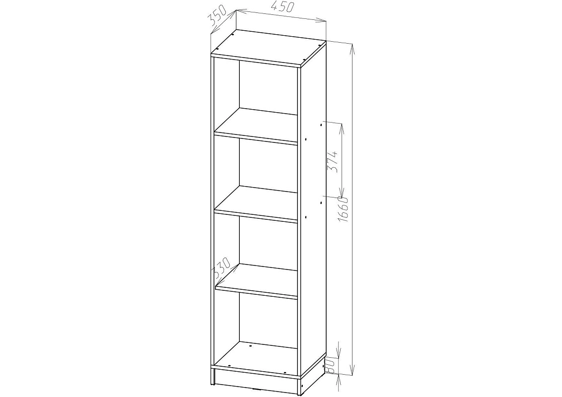 | Книжные шкафы, стеллажи от 600 мм до 1000 мм | 350 | 1000 | 600 |