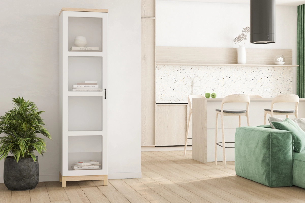 Комплектация: фасады с фрезеровкой, петли без доводчика, ножки массив дерева, стекло простое