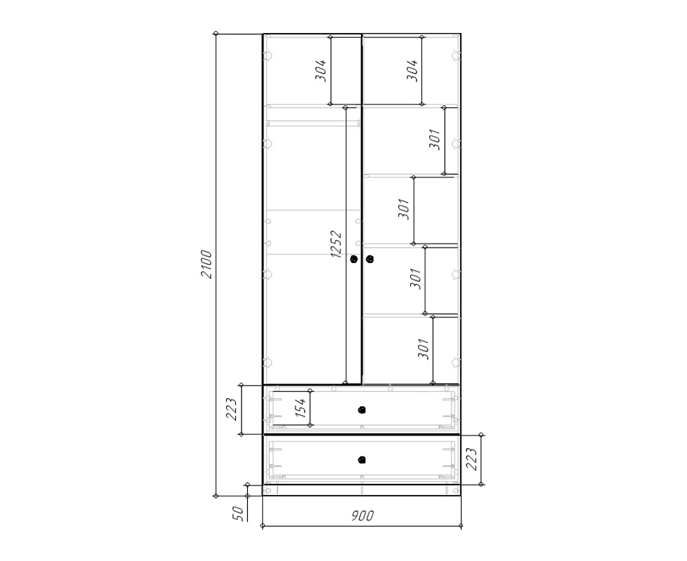 шкаф распашной Скарабей-2.2: 900х2100х520