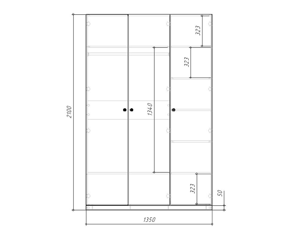 шкаф распашной Стрекоза-3: 1350х2100х520