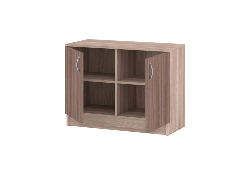 Комплектация: корпус, полки и фасады изготовлены из ЛДСП 16 мм с кромкой ПВХ 0,4 мм, задняя стенка ХДФ (ламинированная), металлические ручки-скобы, петли на фасадах металлические, угол открывания 90 градусов, без доводчиков