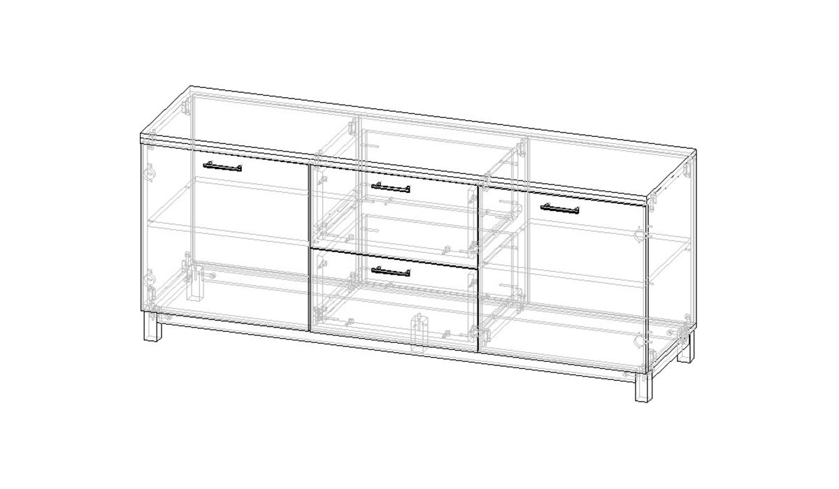 Комплектация: шариковые направляющие 100% выдвижения, фасады с фрезеровкой, петли без доводчика, ножки массив дерева