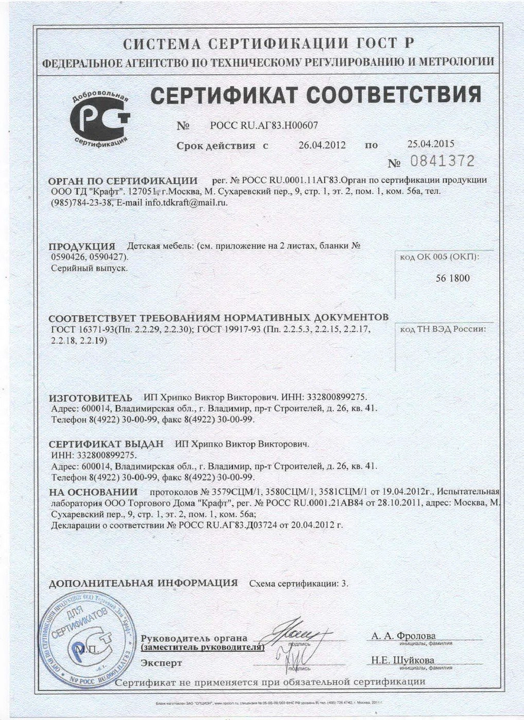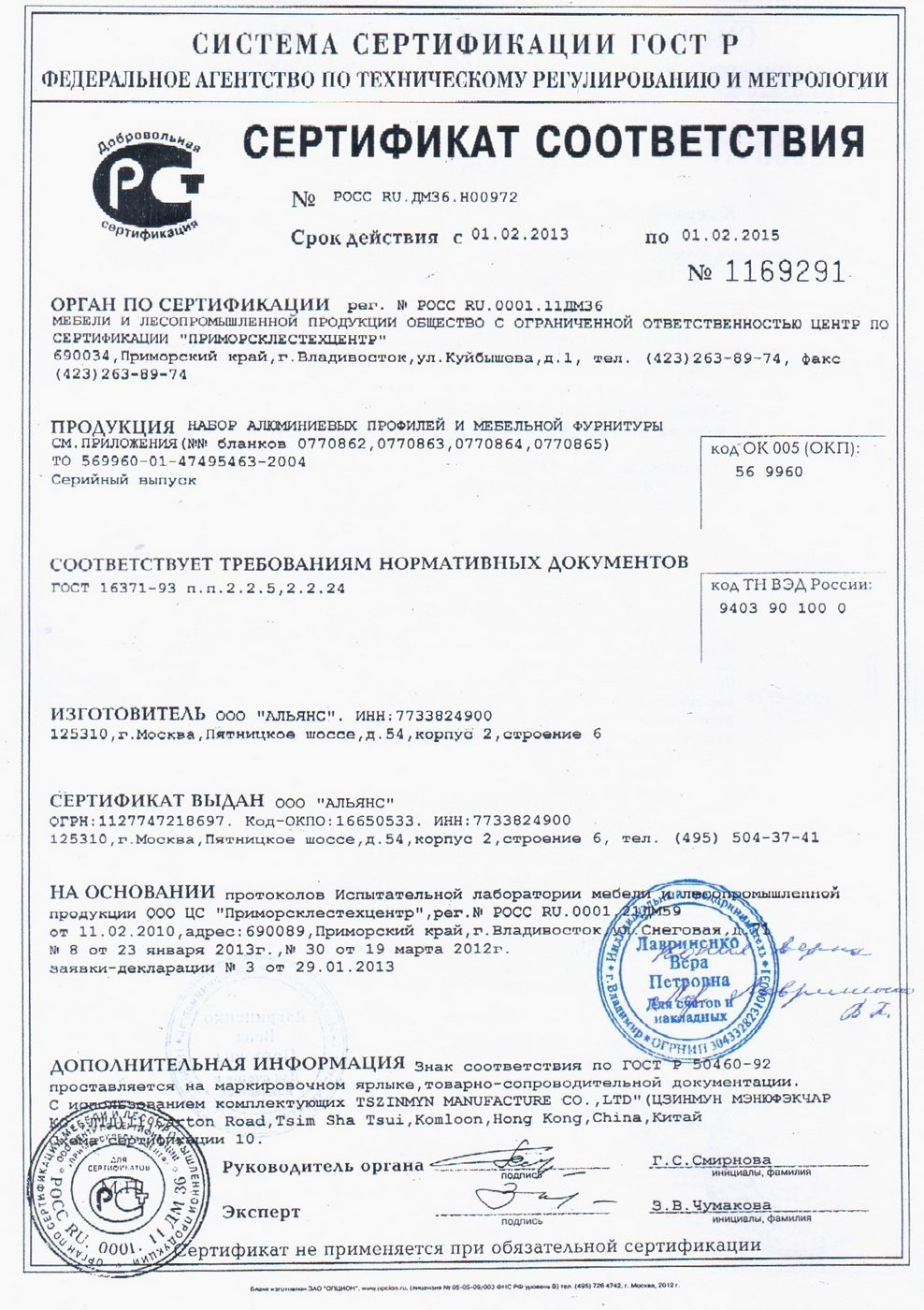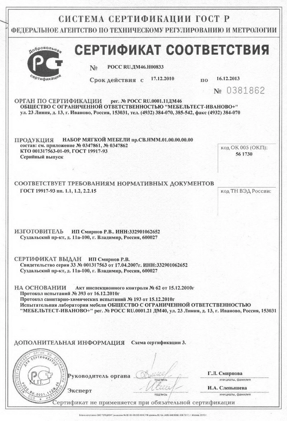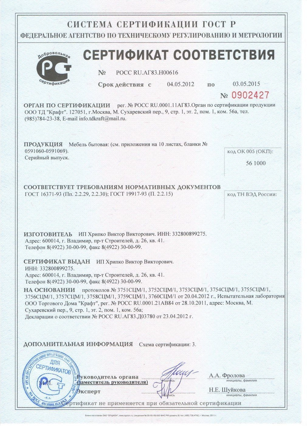 ГлавнаяУслуги и сервисСертификаты Сертификаты качества Сертификаты Сертификат соответствия Приложение к сертификату соответствия Сертификат соответствия Сертификат соответствия Приложение к сертификату соответствия Сертификат соответствия Сертификат соответствия Сертификат Мебельхолдинг Сертификат Мебельхолдинг Сертификат Росмебель
